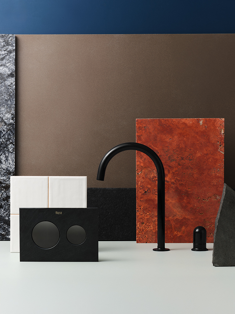 Colores como el amarillo miel, el verde menta o el azul cobalto ganan protagonismo como acentos cromáticos, presentes en soluciones clave como la grifería Nu o las placas de accionamiento de descarga PS de Roca. También destacan las propuestas monocromáticas, como las que encontramos en los nuevos muebles Volia –en elegantes acabados como el gris arena y el ónix– que aportan un plus de sofisticación al espacio.