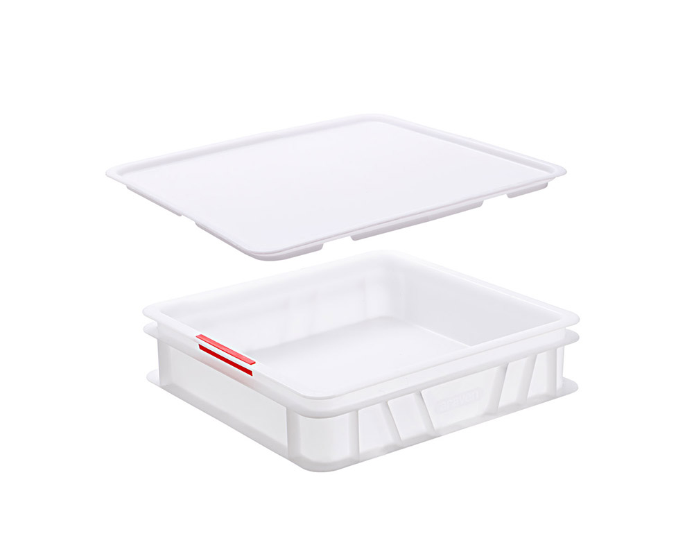 La cubeta se lanzó al mercado con unas dimensiones de 60×40 cm, con 10 cm de altura exterior y una capacidad total de 18 litros y ahora la gama se ha completado con tres nuevos tamaños. Por un lado, dos nuevas cubetas con la misma base: con 7,5 cm de altura (12 litros de capacidad) y 15 cm (27 litros de capacidad), que pueden utilizarse combinadas entre sí y comparten la misma tapa. Además, se ha presentado también la cubeta de 40x30x10 cm, con 8 litros de capacidad, y su tapa-bandeja de apoyo. Está pensada especialmente para establecimientos de menor tamaño, donde la producción de masas no es tan grande.