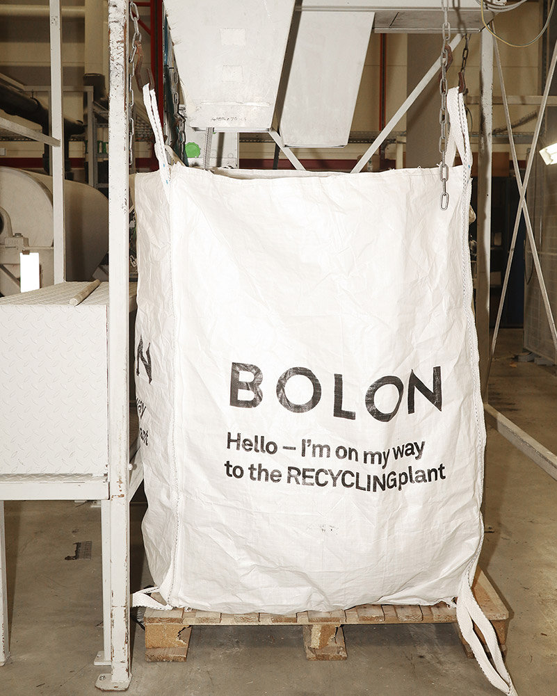 El material recogido se envía a la planta de reciclaje de Bolon en Ulricehamn (Suecia), donde se gestiona y transforma en nuevo material para la fabricación de suelos y alfombras Bolon. Este proceso permite reducir significativamente tanto los residuos como las emisiones de CO₂ asociadas al fin de vida del producto.