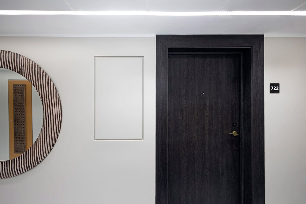 Este contexto exigente determinó la selección de soluciones Vicaima aplicadas en diversas áreas del edificio, incluyendo accesos a habitaciones, pasillos y zonas técnicas. Entre ellas destaca el Portaro® EI60 AC43dB, que combina protección cortafuego con aislamiento acústico, reforzando la seguridad, la privacidad y el confort de los huéspedes.