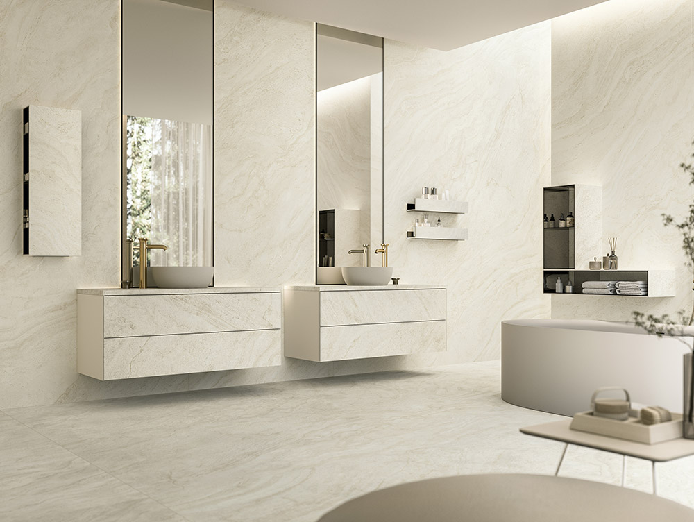 Atlas Concorde presenta Marvel T, la colección de gres porcelánico efecto travertino capaz de transformar el baño en una experiencia sensorial, combinando estética contemporánea y maestría artesanal.