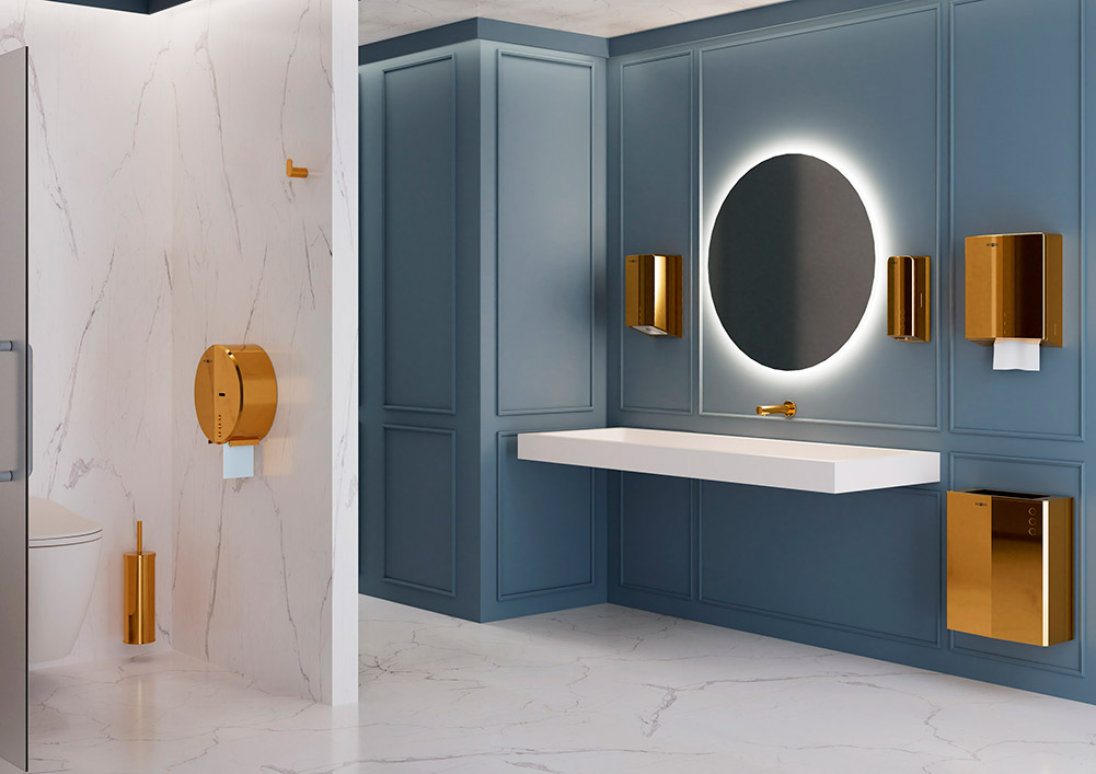 Color Edition nace como una evolución en el diseño del baño profesional, donde el color adquiere un papel protagonista. La colección responde a la creciente demanda de espacios más cuidados, coherentes y personalizados, trasladando las tendencias de acabados metálicos al ámbito contract.