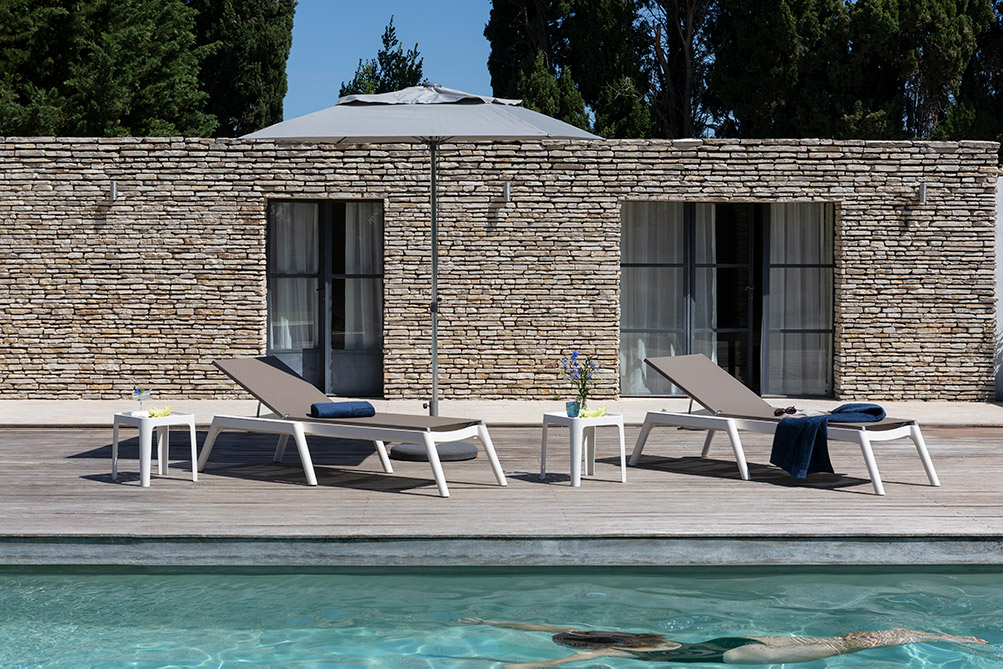 La nueva tumbona Provence de Grosfillex se complementa con la nueva mesa auxiliar baja Provence de 40x40cm. Se trata de un complemento funcional y elegante diseñado específicamente para zonas húmedas y exteriores de entornos profesionales (hoteles, spas y piscinas). Destaca por su equilibrio entre la estética del sur de Francia y una alta resistencia técnica, aportando un toque premium a los espacios de descanso.