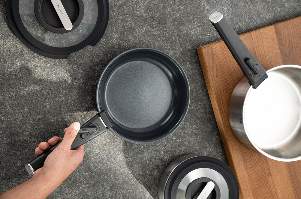 Zwilling presenta Zwilling Unlock, el nuevo sistema all-in-one que redefine la rutina en la cocina. Este set inicial de sartenes dispone de mango extraíble, lo que permite un máximo rendimiento en el mínimo espacio, ya que facilita apilar todo el set en el mismo lugar. Equipadas con el recubrimiento especial Ceraforce Titanium, estas sartenes llegan a ser hasta cinco veces más duraderas. Un nuevo imprescindible para profesionales y aficionados que cocinan a lo grande y necesitan la máxima flexibilidad en espacios reducidos. Con Zwilling Unlock, un solo mango desmontable e infinitas posibilidades para conseguir cocinar con precisión, servir con elegancia y almacenar con facilidad.